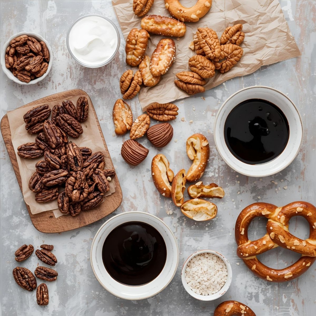 🎄 Botana Navideña: Nueces y Pretzels con Salsas Negras