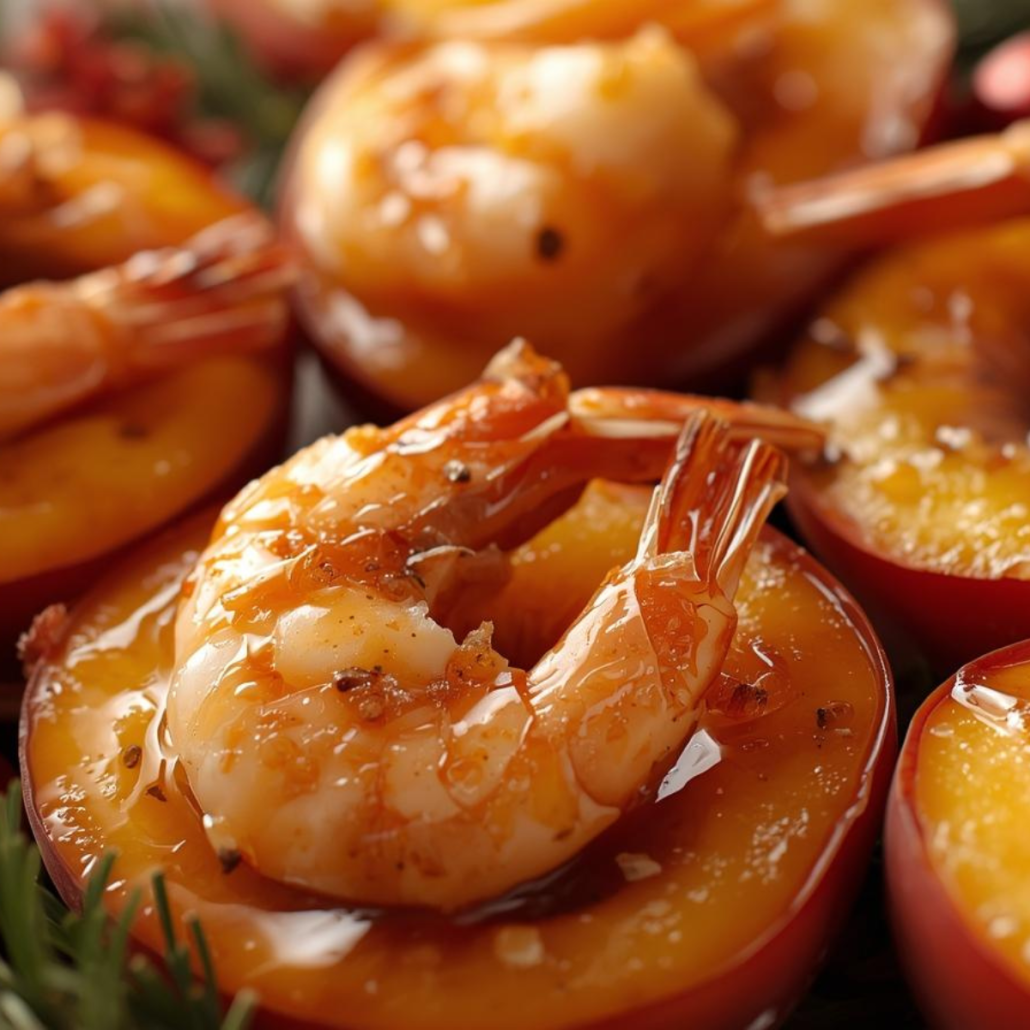 Camarones a la Diablona con Duraznos Glaseados